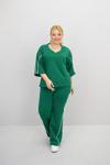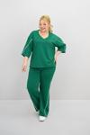 Yeni sezonun rahatlık ve şıklığı bir arada sunan parçası, 42-52 bedene uyumludur. V yaka tasarımıyla modern bir görünüm sunan kısa kollu üst, kollarda yer alan kontrast ara biye detayıyla hareketlendirilmiştir. Alt parça ise bol paça, yüksek bel formundadır ve cepli yapısıyla hem rahat hem de kullanışlıdır. Pantolonun yanlarında kullanılan ara biye detayları, takımı bütünleyen şık bir kombin oluşturur. Esnek bel yapısı sayesinde konforlu bir kullanım sunar. 2 iplik yumuşak dokulu kumaşı ile gün boyu rahatlık sağlar. Manken ’in üzerindeki beden 46 bedendir. (Bedenler arası +/- 2cm fark olmaktadır.) Model Ölçüleri Boy: 1,72 Kilo: 90 Göğüs: 104 Bel: 88 Basen: 115 Kumaş İçeriği : %80 Pamuk %15 Polyester %5 Elastan Üst Boy : 70 cm’dir. Göğüs : 126 cm’dir. Kol Boy : 34 cm’dir. Alt Bel : 82 cm’dir. Basen : 110 cm’dir. Alt Boy : 111 cm’dir.