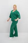 Kadın Büyük Beden Kısa Kollu Ara Biye Detaylı Bol Paça Eşofman Takımı 8189-25 - Image 1