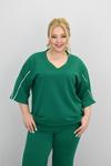 Kadın Büyük Beden Kısa Kollu V Yaka Ara Biye Detaylı Eşofman Takımı 8181-25 - Image 1