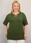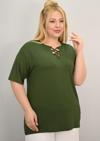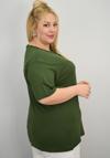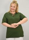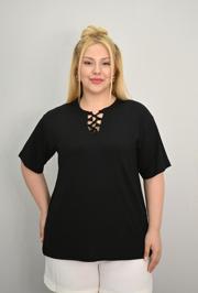 Kadın büyük beden kısa kollu yakası biye detaylı bluz, 40-50 bedene uyumludur. Yaka kısmındaki çapraz biye detayı modele modern bir hava katarken, kısa kollu yapısı günlük kullanıma uygundur. Hafif dökümlü ve nefes alabilen viskon kumaşı sayesinde yaz aylarında serin ve rahat bir kullanım sağlar. Hem spor hem şık kombinler için ideal bir parçadır. Manken ’in üzerindeki beden 44 bedendir. (Bedenler arası +/- 2cm fark olmaktadır.) Model Ölçüleri Boy: 1,72 Kilo: 90 Göğüs: 104 Bel: 88 Basen: 115 Kumaş İçeriği : %95 Viskon %5 Elastan Üst Boy : 72 cm’dir. Göğüs : 122 cm’dir. Kol Boyu : 26 cm’dir.