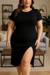 Kadın Büyük Beden Kısa Kollu Yanı Yırtmaçlı Bisiklet Yaka Viskon Elbise