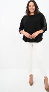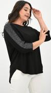 Kadın Büyük Beden Kolları Sim Detaylı Bluz, 42-52 bedene uyumludur. Fakir kol kesimi ve kollarında yer alan sim detaylı şeritleriyle dikkat çeken bu bluz, hafif kayık yaka tasarımıyla şıklığınızı ön plana çıkarır. Oversize kesimi sayesinde rahat bir kullanım sunarken, arka kısmının ön kısma göre daha uzun olması modern bir görünüm kazandırır. Viskon kumaştan üretilmiştir, bu sayede hem hafif hem de rahattır. Manken ’in üzerindeki beden 44 bedendir. (Bedenler arası +/- 2cm fark olmaktadır.) Model Ölçüleri Boy: 1,80 Kilo: 90 Göğüs: 90 Bel: 89 Basen: 116 Ürün Ön Boyu : 67 cm’dir. Ürün Arka Boyu : 76 cm’dir. Göğüs : 68 cm’dir
