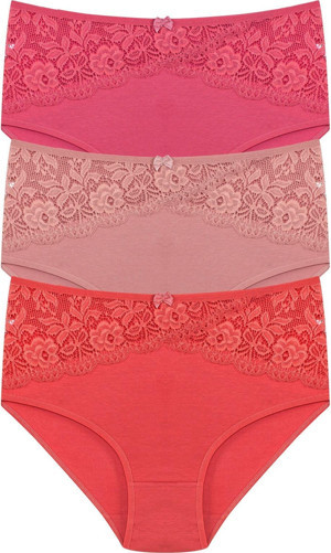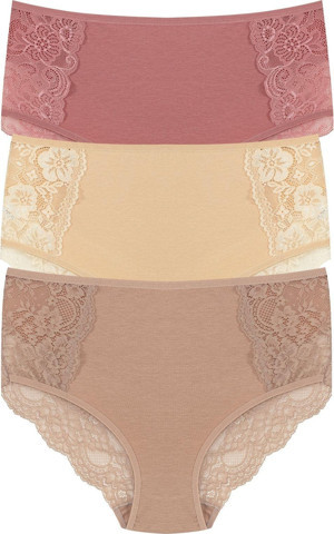 3'Lü Pamuklu Bel Dantel Detaylı Yüksek Bel Büyük Beden Bato Kadın Külot
