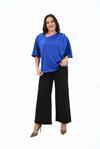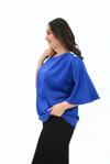 3235 Açık Omuz Detaylı Saten Büyük Beden Şık Bluz Indigo - Image 1