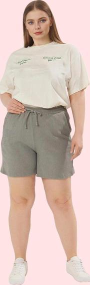 PayBuy Kadın Büyük Beden Örme Şort Regular Fit Günlük Kullanım Hafta Sonu Yaz Aylarının Vazgeçilmezi