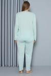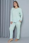 Kadın Büyük Beden Penye Uzun Kol Pijama Takım Su Yeşili - Image 1