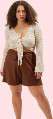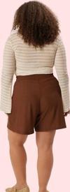 Rahatlığı ve şıklığı bir arada sunan bu kahverengi büyük beden örme şort, yaz aylarının vazgeçilmezi olacak! Relaxed kalıbı ile gün boyu konfor sunarken, kısa boyu ve şık tasarımı ile her ortamda dikkat çekici bir görünüm yaratıyor. Yumuşak örme kumaşı, nefes alabilir yapısıyla sıcak havalarda serin kalmanıza yardımcı olurken, geniş paça tasarımı ise özgür hareket kabiliyeti sağlar. Cepli tasarımı ise pratik kullanım sunuyor. Bu şortu sevdiğiniz tişörtler, bluzlar ve topuklu ayakkabılarla kombinleyerek hem günlük hayatta hem de özel günlerde şık ve rahat bir görünüm elde edebilirsiniz.