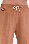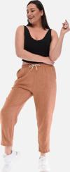 Oppland Kadın Beli Lastikli Pantolon Cepli Havuç Paça Krep Hürrem Kumaş Rahat Kesim Tam Kalıp Kahverengi 4XL
