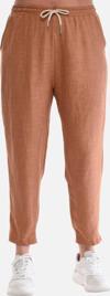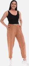Büyük Beden Keten Yüksek Bel Lastikli Dar Paça Mom Pantolon
