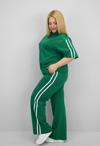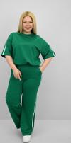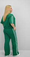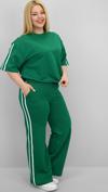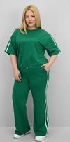 Günlük giyimde hem konforu hem de modern görünümü bir arada sunan bu kadın büyük beden eşofman takımı, 42-50 bedene uyumludur. Bisiklet yaka ve kısa kollu tasarıma sahip üst parçası, kollarında ve alt yan kısımlarında yer alan şerit detaylarıyla dinamik bir görünüm kazandırıyor. Üst kısmın etek ucunda yer alan ayarlanabilir büzgü detayı, vücuda göre şekil alarak kullanıcısına esneklik sunuyor. Alt parça ise yüksek bel, lastikli ve cepli yapısıyla hem rahat hem işlevsel. Bol paça kesimi sayesinde gün boyu özgürce hareket edebilir, sportif ve modern bir görünüm elde edebilirsiniz. Yumuşak ve nefes alabilir 2 iplik kumaştır. Manken ’in üzerindeki beden 44 bedendir. (Bedenler arası +/- 2cm fark olmaktadır.) Model Ölçüleri Boy: 1,72 Kilo: 90 Göğüs: 104 Bel: 88 Basen: 115 Kumaş İçeriği : %80 Pamuk %15 Polyester %5 Elastan Üst Boy : 61 cm’dir. Göğüs : 128 cm’dir. Kol Boyu : 27 cm’dir. Bel : 74 cm’dir. Basen : 140 cm’dir. Alt Boy : 106 cm’dir.