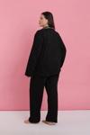 Çamaşır Kenti markasının özel tasarımı olan Kadın Büyük Beden Siyah Beyaz Biyeli Desenli Düğmeli Pijama Takımı, şıklığı ve rahatlığı bir arada sunar. Bu özel pijama takımı, büyük beden kadınların konforunu düşünerek tasarlanmıştır.