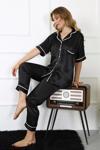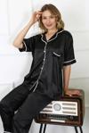 Çamaşır Kenti kadın büyük beden siyah saten pijama takımı, şıklığı ve rahatlığı bir arada sunar.