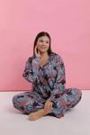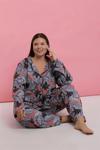 Kadın Büyük Beden Somon Yaprak Desenli Düğmeli Pijama Takımı, evde rahat etmek isteyen kadınların tercihi olacak.