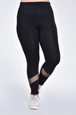 Büyük Beden Yüksek Bel Paça Verev Tül Tayt