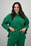 Şıklık ve konforu bir araya getiren bu büyük beden eşofman takımı, 42-50 bedene uyumludur. Zarif taş baskı detaylarıyla göz kamaştırır. Bisiklet yaka tasarımı ile sade ve şık bir duruş sunarken, truvakar kol modeli modern bir hava katıyor. Alt kısmı bol paça kesimli olup, yüksek bel özelliği sayesinde rahat bir kullanım sağlıyor. Cepli tasarımıyla fonksiyonelliği artıran bu takım, 2 iplik kumaştan üretilerek yumuşak ve esnek dokusuyla gün boyu konfor sunuyor. Manken ’in üzerindeki beden 44 bedendir. (Bedenler arası +/- 2cm fark olmaktadır.) Model Ölçüleri Boy: 1,80 Kilo: 90 Göğüs: 90 Bel: 89 Basen: 116