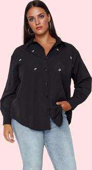 PayBuy Kadın Büyük Beden Taş İşlemeli Poplin Gömlek Günlük Şıklık Hafta Sonu Yaz Aylarının Vazgeçilmezi