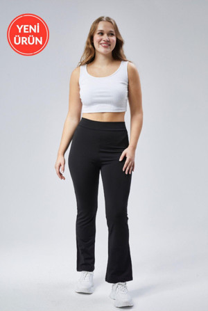 Curve Büyük Beden Dalgıç Kumaş İspanyol Paça Toparlayıcı Siyah Tayt