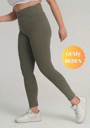 Curve Büyük Beden Fitilli Yüksek Bel Toparlayıcı Haki Tayt