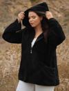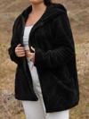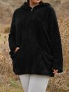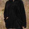 Kadın Büyük Beden Uzun Kollu Cepli Kapüşonlu Fermuarlı Peluş Hırka Ceket