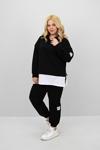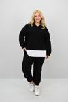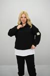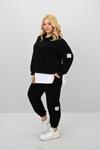 Günlük şıklığı ve konforu bir araya getiren bu büyük beden eşofman takımı, 42-50 bedene uyumludur. Üst kısmı uzun kollu, kapüşonlu ve rahat kesimlidir. Yan yırtmaç ve beyaz ekstra parça detayı ile katmanlı bir görünüm sunar. Üstte yer alan garnili yapı ve arma detayı sportif şıklık kazandırır. Alt parçası yüksek bel, cepli ve paça kısmı lastikli olup, hem konforlu hem de vücuda oturan bir duruş sergiler. Pantolonda da arma detayı mevcuttur. Takımın tamamı esnek ve nefes alabilen 2 iplik kumaştan üretilmiştir. Manken ’in üzerindeki beden 46 bedendir. (Bedenler arası +/- 2cm fark olmaktadır.) Model Ölçüleri Boy: 1,72 Kilo: 90 Göğüs: 104 Bel: 88 Basen: 115