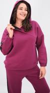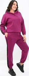 Moda Berray 1950 Kolları Taşlı Tam Kalıp Tarz Kadife Büyük Beden Eşofman Takım Mürdüm
