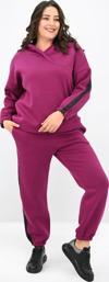 Koza Butik Kadın Büyük Beden Yan Şerit Detaylı Kapüşonlu Eşofman Takımı 8151-25