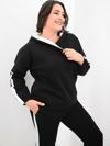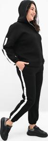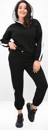 Bu şık ve rahat Kadın Büyük Beden Yan Şerit Detaylı Kapüşonlu Eşofman Takımı, 42-50 bedene uyumludur. Üst kısmı kapüşonlu tasarımıyla spor şıklık sunarken, yan kısımlarda yer alan şerit detayları hareketli bir görünüm kazandırır. Alt kısmı, yüksek bel ve cepli tasarımı sayesinde hem rahat hem de kullanışlıdır. Paçaları lastikli olup, vücuda uyumlu bir form sunar. 3 iplik şardonlu kumaştan üretilmiştir. Manken ’in üzerindeki beden 44 bedendir. (Bedenler arası +/- 2cm fark olmaktadır.) Model Ölçüleri Boy: 1,80 Kilo: 90 Göğüs: 90 Bel: 89 Basen: 116