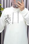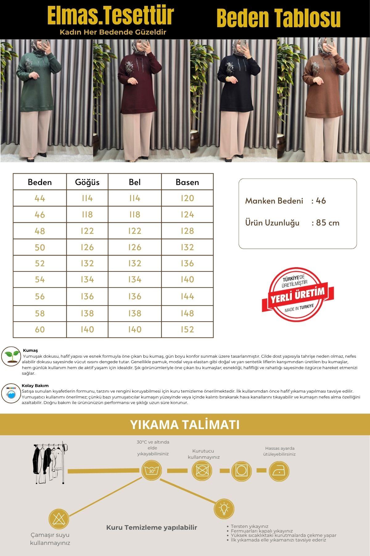 Şıklık, konfor ve zarafeti bir arada sunan bu taş işlemeli zincir detaylı tesettür tunik, günlük hayatınızda ve özel davetlerde tarzınızı mükemmel şekilde tamamlar.