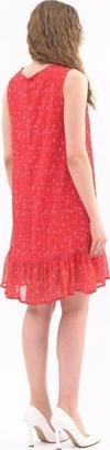 Bu zarif çiçek desenli elbise, romantik bir görünüm sunar ve yaz aylarında tercih edilebilir. Şık bir sandalet veya topuklu ayakkabı ile tamamlanabilir. Hem günlük hem de özel davetlerde kullanılabilir.