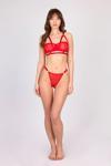 Göz Alıcı Şıklık: Kadın Çapraz Askı Detaylı Balenli Kırmızı String Tanga Takım