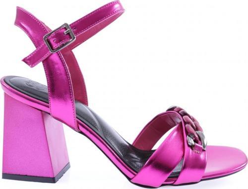 DGN Kadın Çapraz Bantlı Burgu Aksesuarlı Topuklu Sandalet Fuşya Açma 95821033