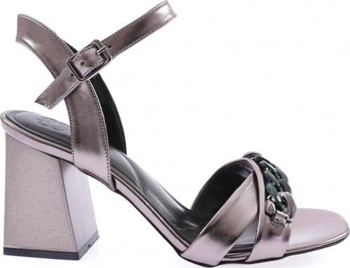 DGN Kadın Çapraz Bantlı Burgu Aksesuarlı Topuklu Sandalet Platin Açma 95821033