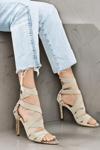 Kadın çapraz Elastik Bantlı Stiletto Topuklu Arka Fermuarlı Rahat Kullanımlı Sandalet Modeli