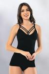 Ön kısmı çapraz ipli askılı yumuşak kadın atleti...