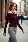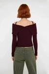 Ürün Özellikleri: Fitted kalıp, akrilik polyester viskoz materyal, düz desen, carmen yaka, standart kol, triko kumaş, bordo renk.