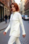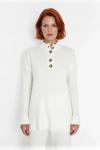 Ürün Özellikleri: Relaxed kalıp, akrilik polyester materyal, düz desen, düğmeli yaka, düşük kol, triko kumaş, ekru renk.
