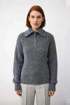 Ürün Özellikleri: Regular kalıp, akrilik polyester poliamid materyal, düz desen, fermuarlı dik yaka, düşük kol, triko kumaş, gri renk.