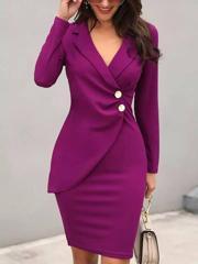 Kadın Ceket Yaka Düğme Detaylı Atlas Kumaş Elbise