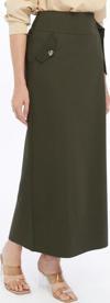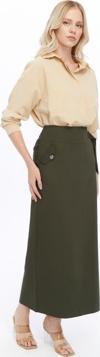 Bu şık kalem etek, ofis şıklığınızı tamamlamak için harika bir seçenek. Üst olarak ince dokulu bir bluz ya da şık bir gömlekle kombinleyebilirsiniz. Hem rahat hem de profesyonel bir görünüm için topuklu ayakkabılar tercih edilebilir.