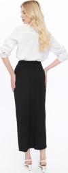 Bu şık kalem etek, ofis şıklığınızı tamamlamak için harika bir seçenek. Üst olarak ince dokulu bir bluz ya da şık bir gömlekle kombinleyebilirsiniz. Hem rahat hem de profesyonel bir görünüm için topuklu ayakkabılar tercih edilebilir.
