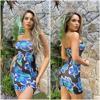Kadın çiçek Deseni Yırtmaç Detay Fırsat ürün Mini Straplez Elbise