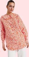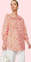 Ersefa Kadın Çiçek Desenli Dokuma Gömlek Bebe Yaka Uzun Kollu Rahat Yazlık Yaz Aylarının Vazgeçilmezi