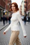 Bu zarif kadın triko kazak, fitted kalıbı ile vücuda mükemmel uyum sağlayarak modern ve şık bir siluet oluşturur. Yüksek kaliteli 73% viskoz ve 27% polyester materyal bileşimi sayesinde inanılmaz derecede yumuşak bir dokunuş sunarken, aynı zamanda hafif ve nefes alabilen yapısıyla gün boyu konfor vadediyor. İnce triko kumaşı, ilkbahar ve sonbahar aylarının serin günlerinde ideal bir sıcaklık sağlarken, ekru rengi ve zarif çiçek deseni her kombininize sofistike bir hava katıyor. Bu kazak, hem şıklığı hem de rahatlığı bir arada arayan kadınlar için vazgeçilmez bir parça olacak. Beldeki bağlama detayı sayesinde farklı stillere kolayca adapte edilebilir.