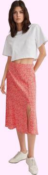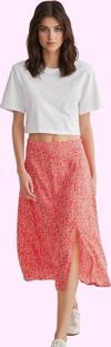 Kadın Yüksek Bel A line Midi Etek Çiçekli Desenli Örme Kumaş Rahat Yaz Aylarının Vazgeçilmezi - Image 1