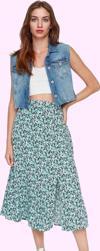 Yaz aylarının vazgeçilmezi, çiçek desenleriyle bezeli midi etek ile şıklığınızı taçlandırın! Yüksek bel tasarımı ve A-line kesimiyle vücut hatlarınızı en güzel şekilde ortaya koyarken, %100 viskoz kumaşından üretilen dokusuyla gün boyu konfor sunuyor. Nefes alan ve hafif yapısıyla sıcak havalarda serin kalmanıza yardımcı olur. Casual görünümünüz için ideal olan bu etek, farklı üstlerle kombinleyerek dilediğiniz tarzı yaratabilirsiniz. Çiçek deseninin canlı renkleri, her kombini canlandırırken, cepsiz tasarımı minimal şıklığı yansıtır. Orta kalınlıktaki kumaşıyla mevsim geçişlerinde de rahatlıkla kullanabilirsiniz. Ürününüzü uzun süre ilk günkü gibi kullanabilmeniz için yıkama talimatlarını (T01) dikkatlice takip etmenizi öneririz. Bu etek, Türkiye'de özenle üretilmiş olup, yüksek kaliteli viskoz kumaştan üretilmiştir. Günlük kombinlerinizin yıldızı olacak bu şık eteği hemen sepetinize ekleyin!