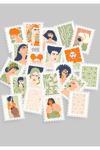 Kadın & Çiçek Temalı Pul Sticker Seti 20'li - Bullet Journal Ajanda Scrapbook