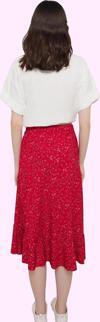 Oppland Kadın Dokuma Viskon Kumaş Parçalı Anne Etek Şık Bahar Çiçeği Desenli Beli Lastikli Rahat Kırmızı Standart - Image 1
