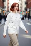PayBuy Kadın Çiçekli Nakış Detaylı Regular Kalıp Bisiklet Yaka Uzun Kol Triko Kazak Günlük Kullanım İçin