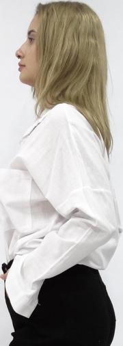 Kadın Çift Cepli Keten Owesize Beyaz Gömlek