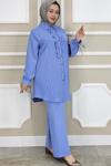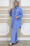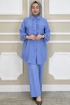 Ka Hijab Parlak Dokulu Bol Kesim İkili Takım - Mavi